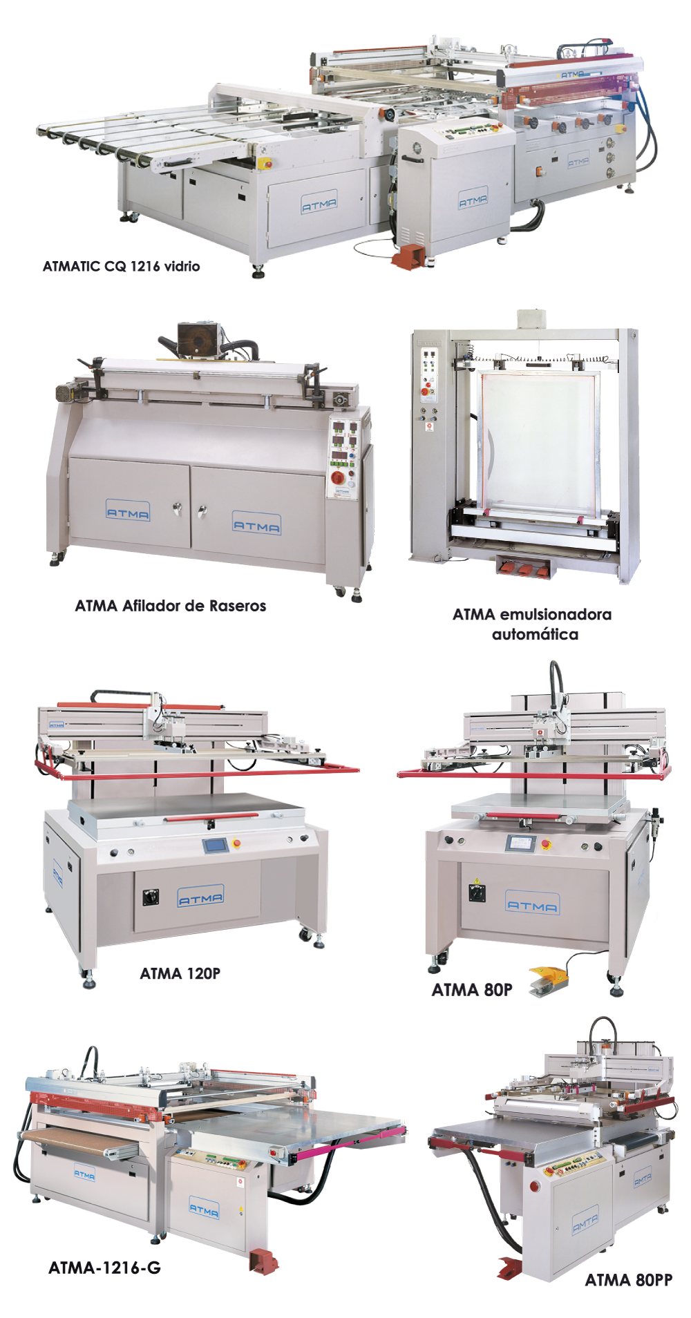 Las máquinas de serigrafía ATMA están diseñadas para incrementar la eficiencia en la producción. Estos equipos de impresión se pueden configurar en varios modos dependiendo de la velocidad de activación y flexibilidad, demanda de productividad y compatibilidad de materiales.